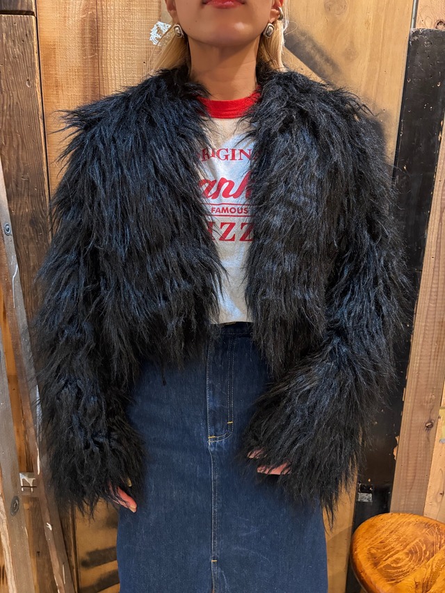 存在感たっぷりのもけもけショート丈ビーガンファージャケット。 【COLOR】 BLACK 【SIZE】 着丈 43cm 肩幅 46cm 身幅 56cm 袖丈 55cm 【MATERIAL】 Shell:ACRYL 85% POLYESTER 15% Lining:NYLON 100% 【CONDITION】 こちらの商品はused品となります。目立ったダメージはなく綺麗な状態です。 【ATTENTION】 ご購入後の返品、交換は致しかねます。 vintage、used、deadstock商品の場合、汚れや傷などがある場合がございます。 商品等に関するご質問はトップページのcontactからお問い合わせ頂くことが出来ますので、是非ご利用下さい。ご返信にはお時間をいただいてしまう場合がございますがご了承ください。 サイズに関しましては、平置き採寸をしております。多少の誤差はご了承ください。 dead stock品に関してましては、同じサイズ表記でも一点一点多少の誤差がございます。 商品の画像に関しましては、カメラやPC環境により色合い等が実際と異なる場合がございます。 ご注文が重複してしまった場合は店頭販売を優先させていただいておりますことを予めご了承ください。