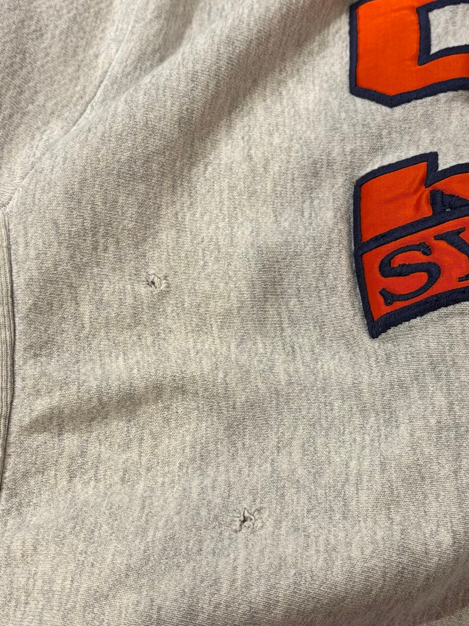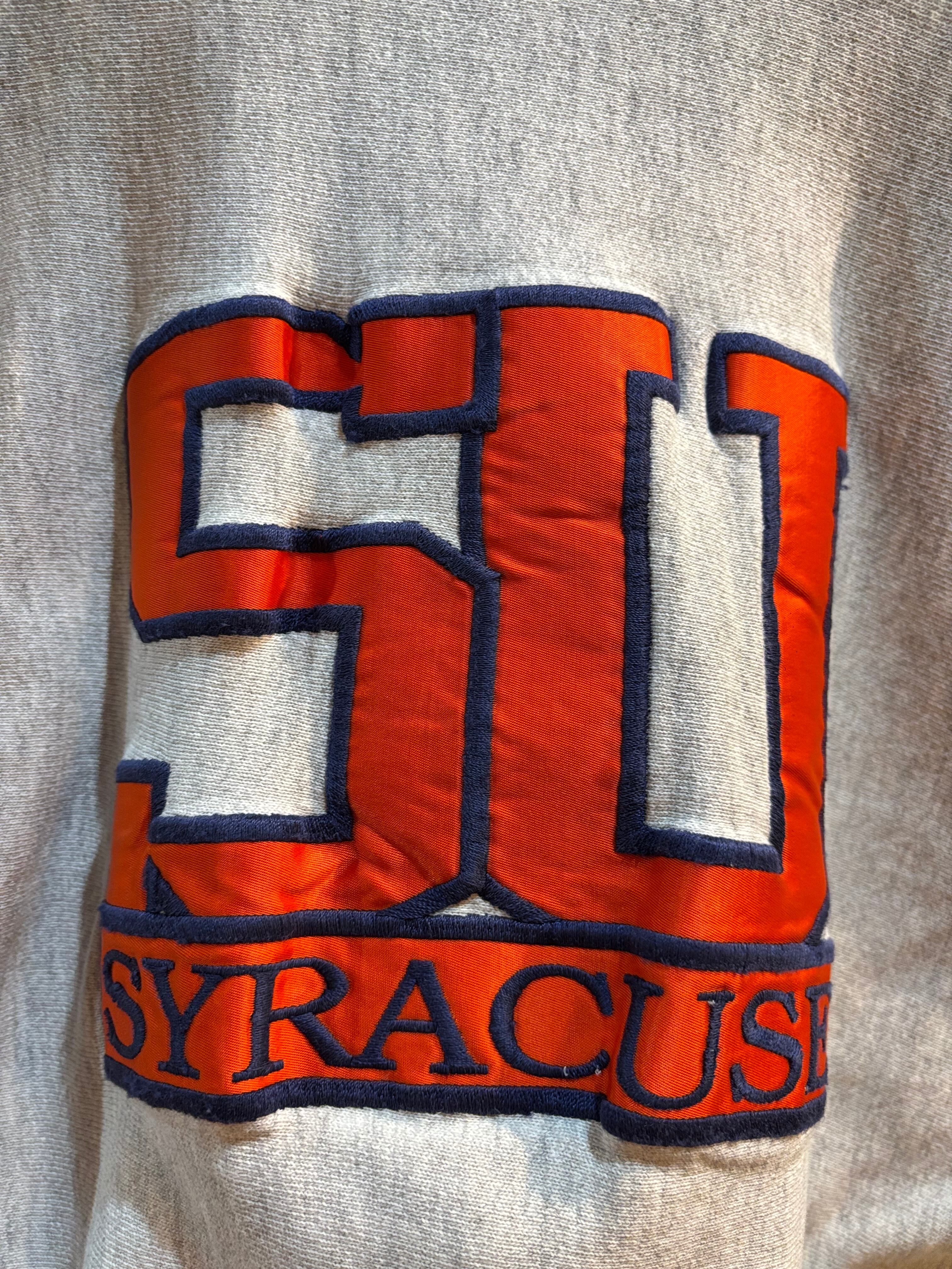 フロントにはシラキュース大学の “SU” ロゴが大きく入り、刺繍と生地貼りを組み合わせた立体的なデザインが魅力の1枚です。