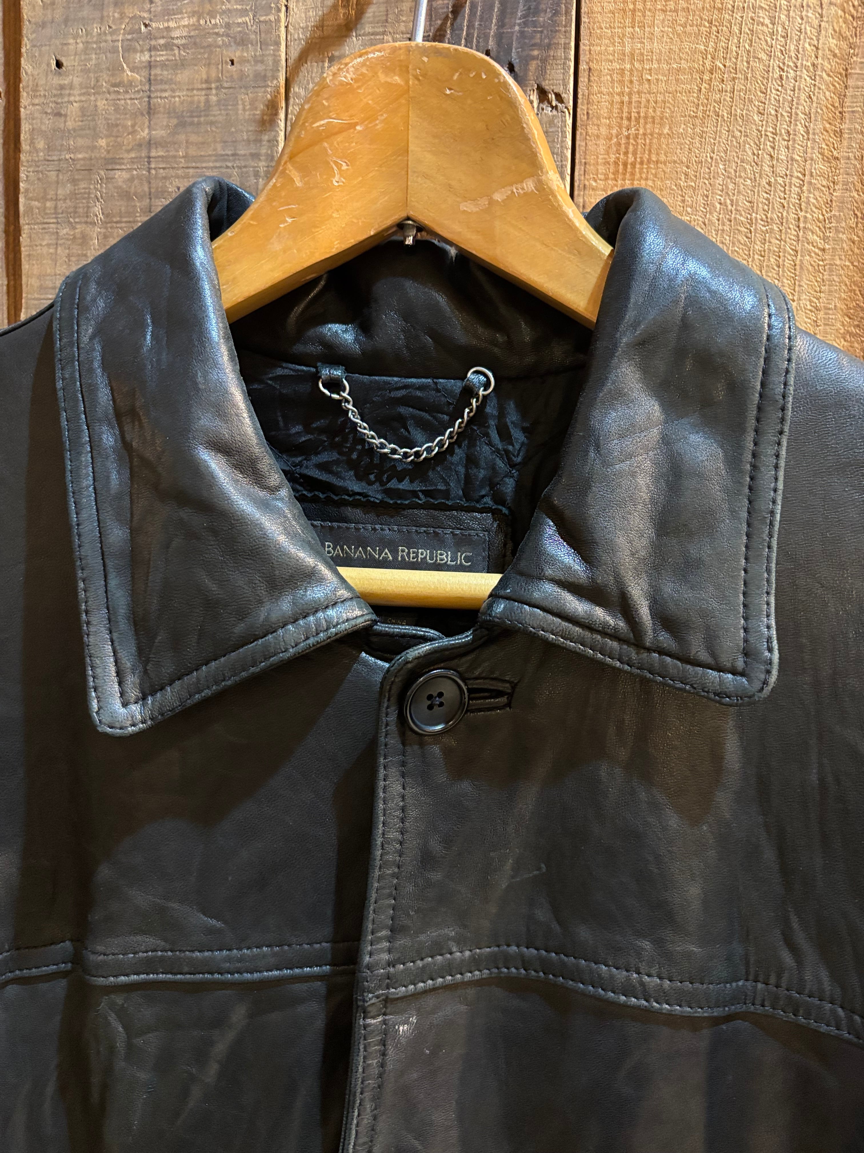 しなやかなレザーの質感が魅力のブラックレザーコートです。