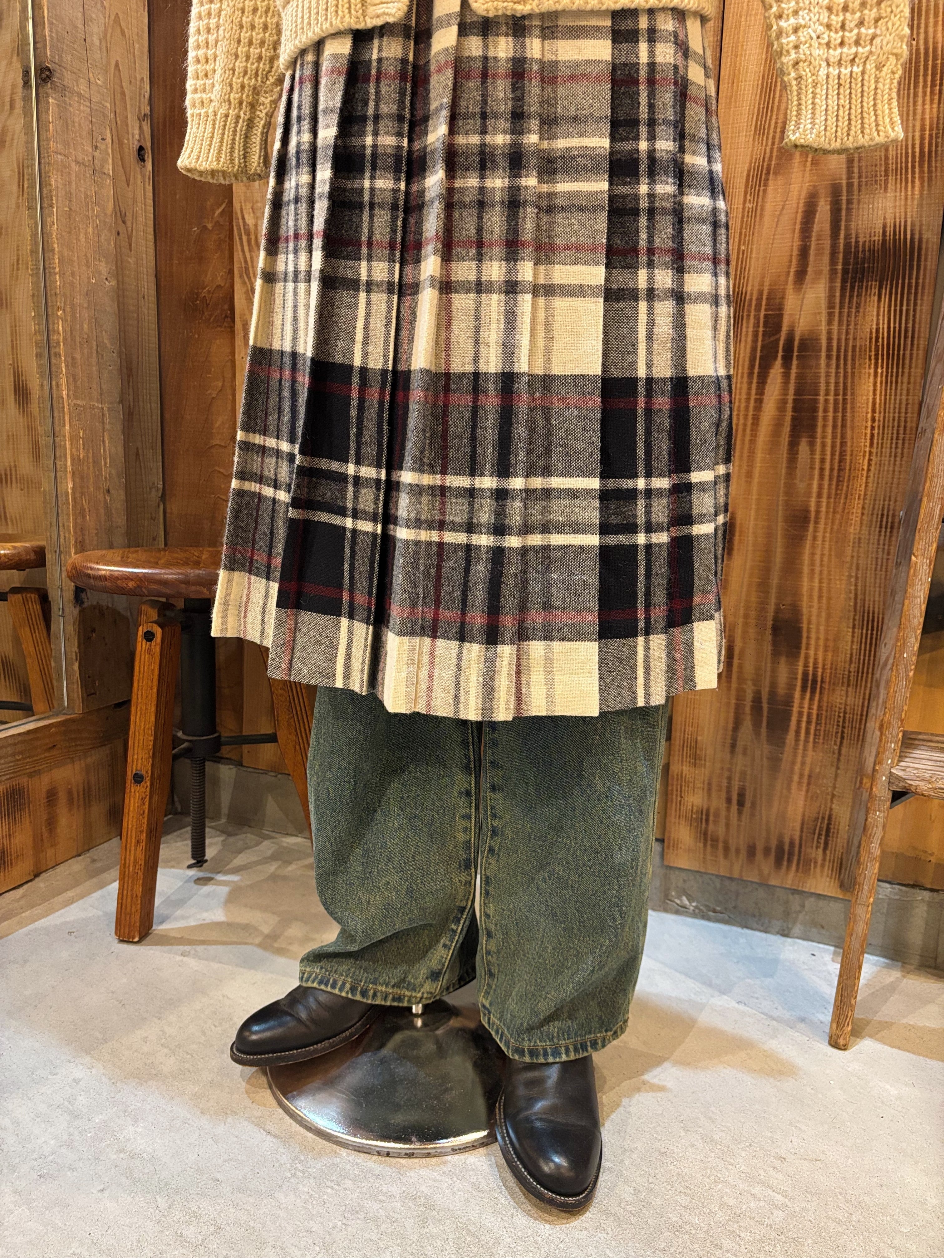 Check Pttern Pleats Skirt