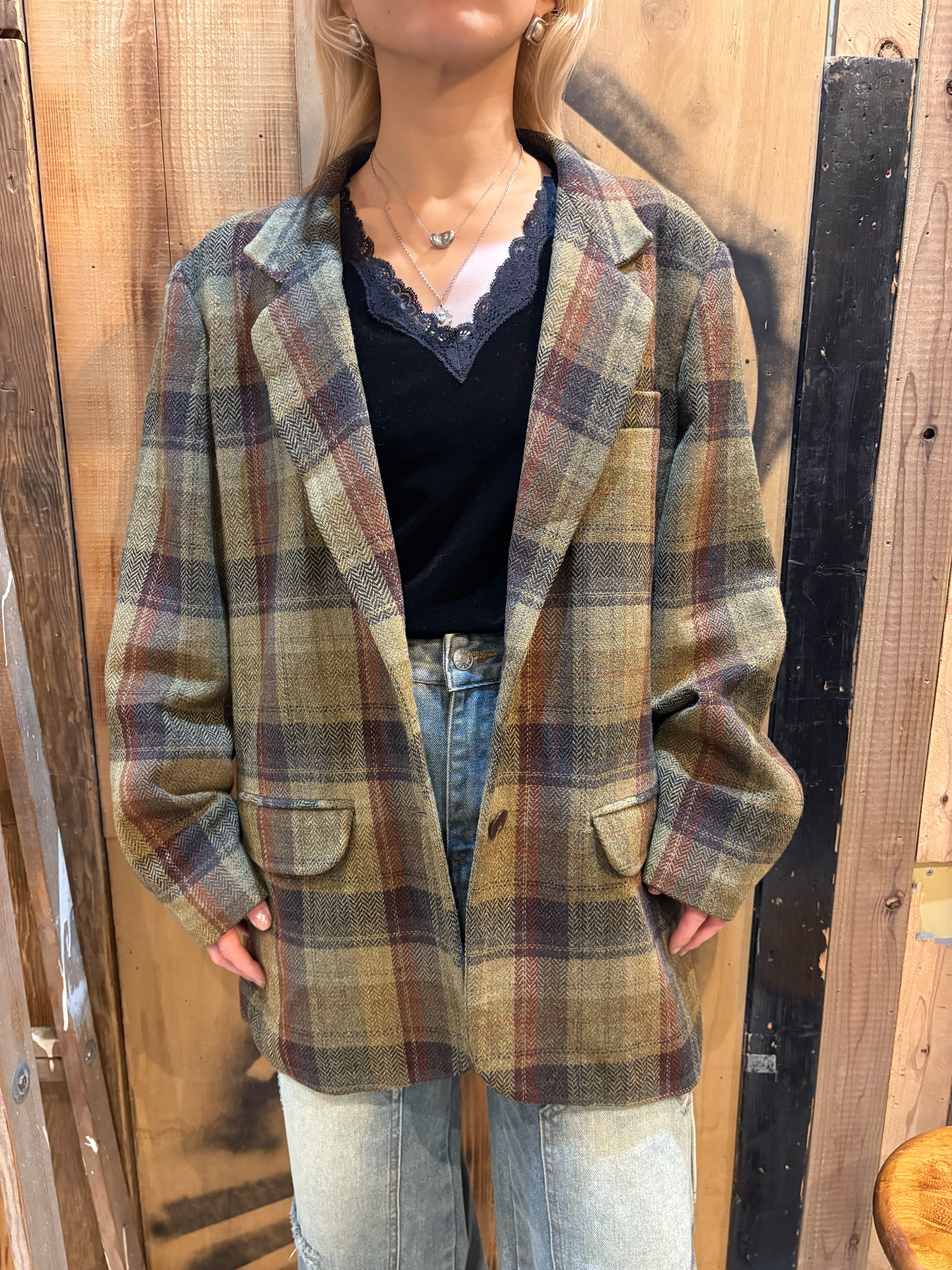 渋めのカーキチェックが雰囲気抜群のウールジャケットが入荷しました。