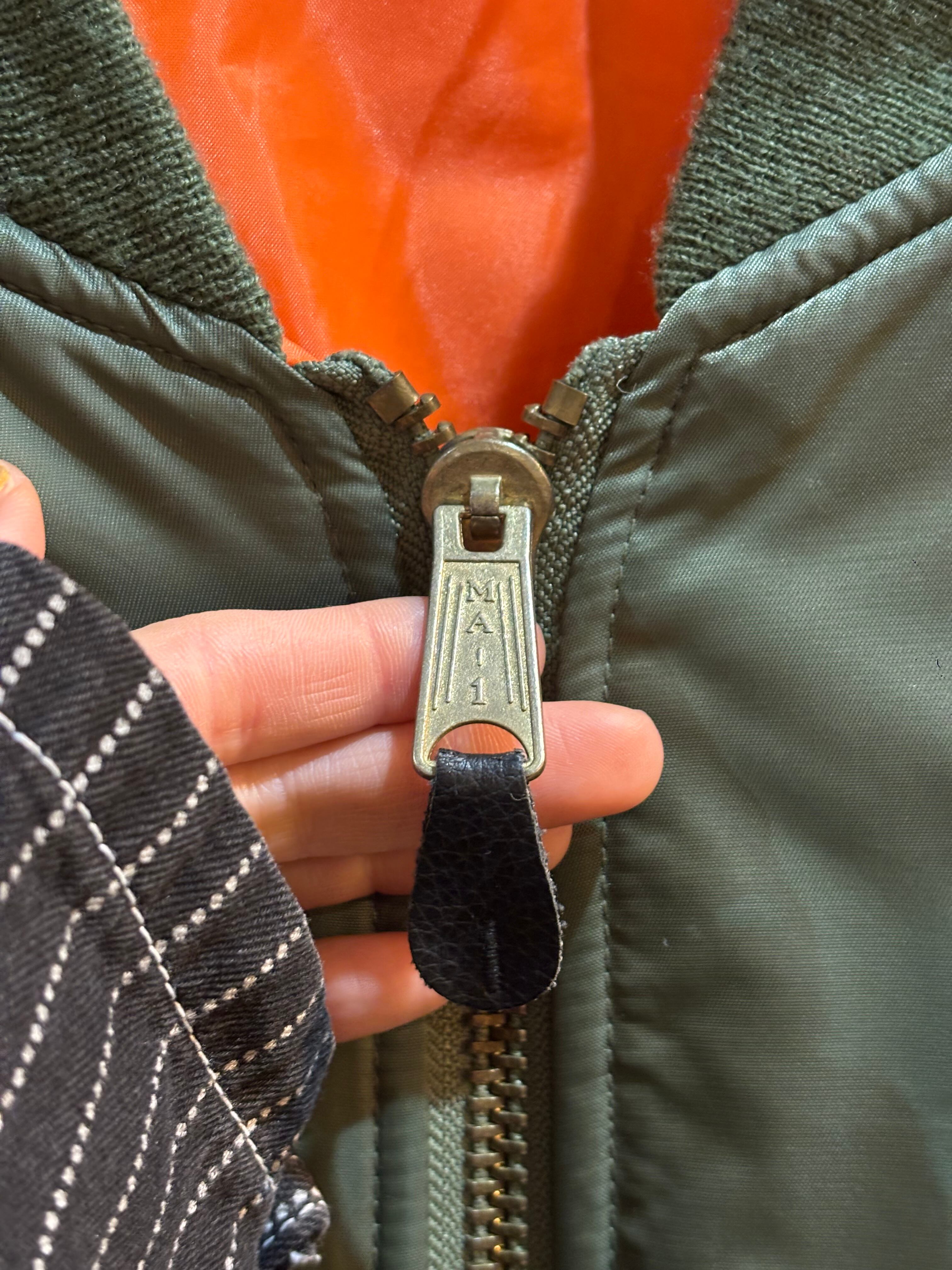 オレンジ裏地や袖のユーティリティポケットやフラップポケットなど、MA-1らしいディテールしっかりあって◎です。ファスナートップの「MA-1」の文字がほっこりした気持ちにしてくれて良きです。