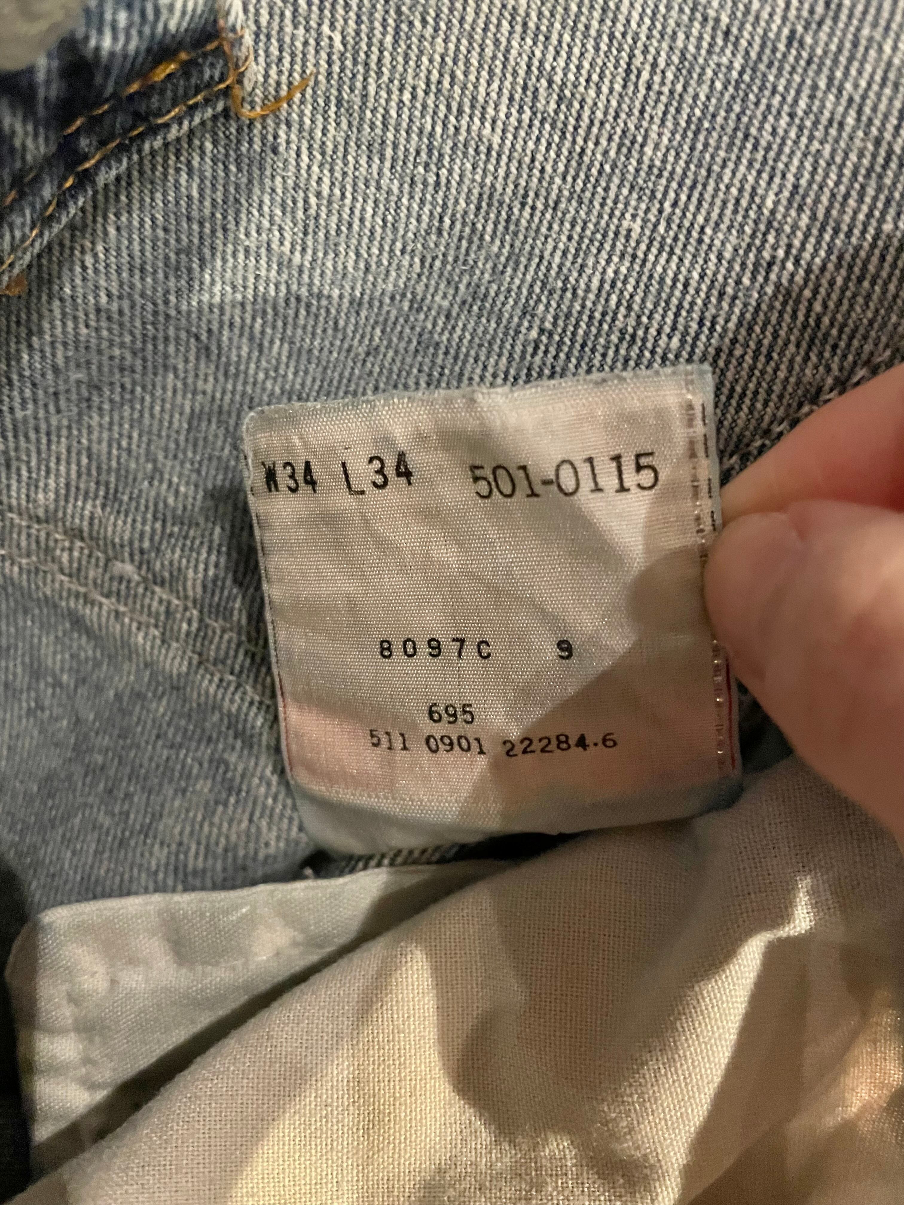 サイズ表記 W34 / L34(レングスは短くリメイクしている為通常の34サイズより短めです。下記の股下寸法をご参照ください)