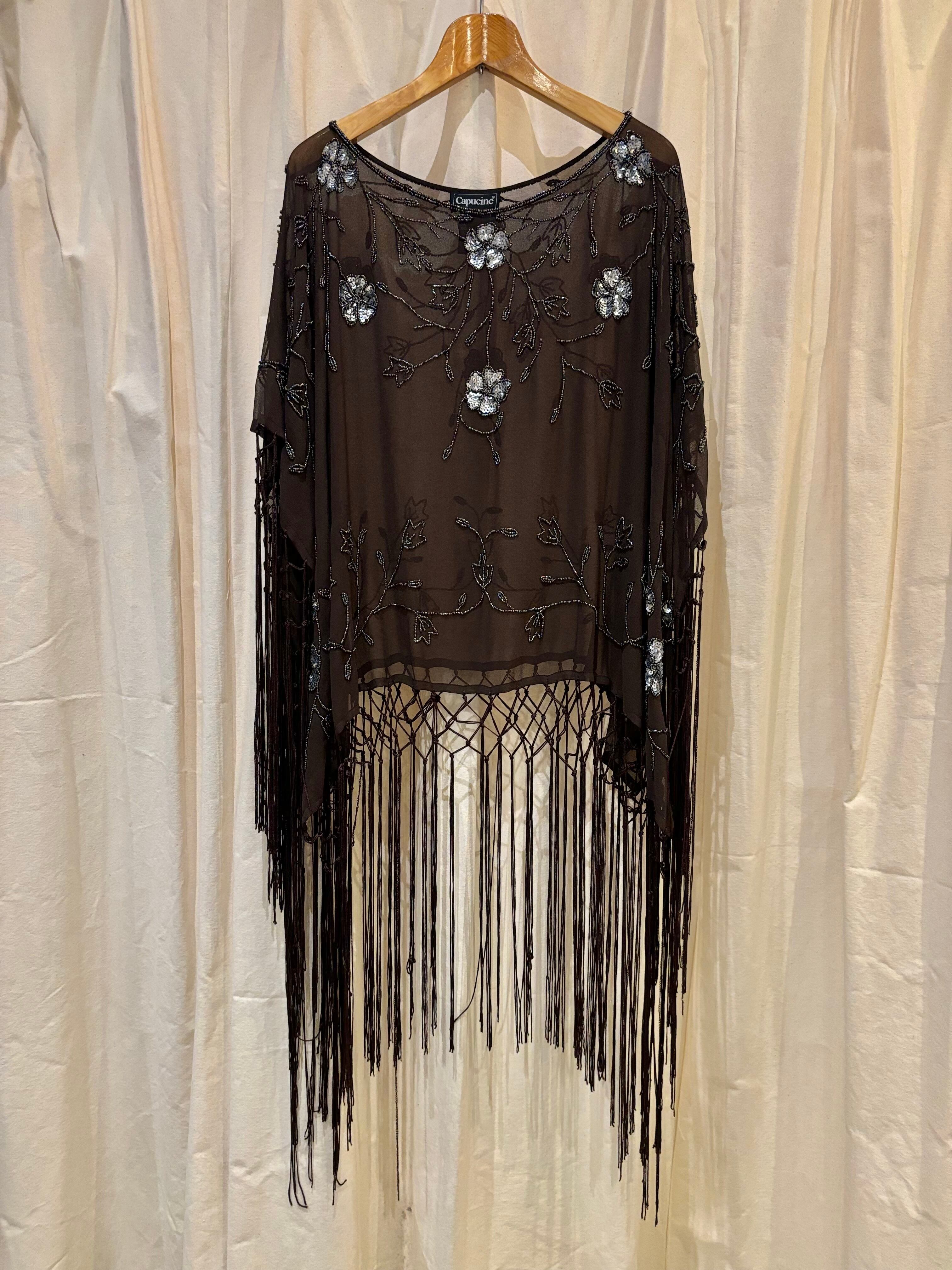 sheer fringe embroidery poncho
